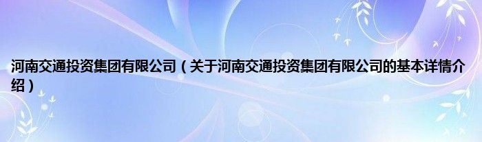 本文关于河南交通投资集团有限公司的基本详情介绍就讲解完毕,希望对大家有所帮助。