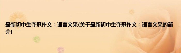 本文关于最新初中生夺冠作文:语言文采的简介就讲解完毕,希望对大家有所帮助。