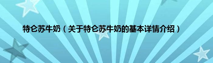 本文关于特仑苏牛奶的基本详情介绍就讲解完毕,希望对大家有所帮助。