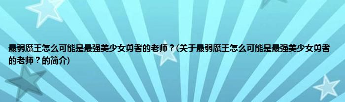 本文关于最弱魔王怎么可能是最强美少女勇者的老师?的简介就讲解完毕,希望对大家有所帮助。