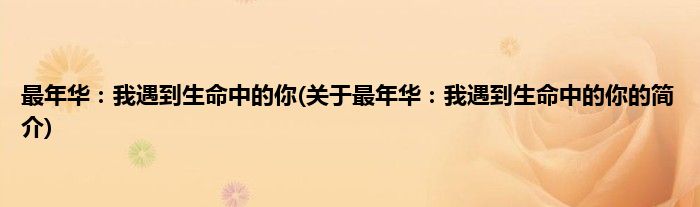 本文关于最年华:我遇到生命中的你的简介就讲解完毕,希望对大家有所帮助。