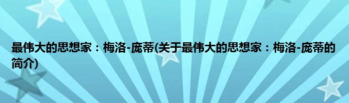 本文关于最伟大的思想家:梅洛-庞蒂的简介就讲解完毕,希望对大家有所帮助。