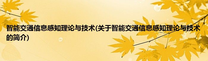本文关于智能交通信息感知理论与技术的简介就讲解完毕,希望对大家有所帮助。