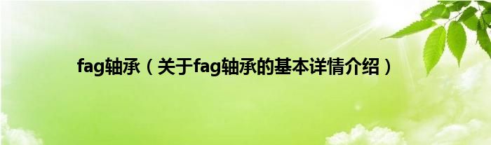 本文关于fag轴承的基本详情介绍就讲解完毕,希望对大家有所帮助。