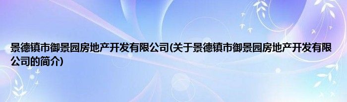 本文关于景德镇市御景园房地产开发有限公司的简介就讲解完毕,希望对大家有所帮助。