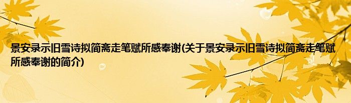 本文关于景安录示旧雪诗拟简斋走笔赋所感奉谢的简介就讲解完毕,希望对大家有所帮助。