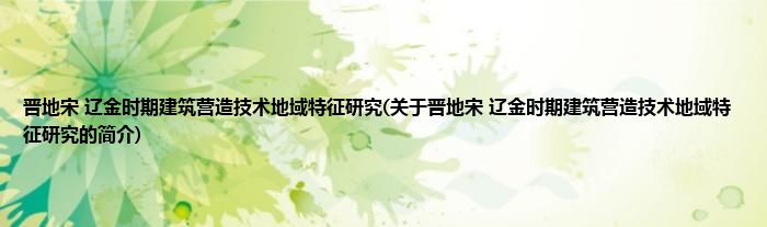 本文关于晋地宋 辽金时期建筑营造技术地域特征研究的简介就讲解完毕,希望对大家有所帮助。