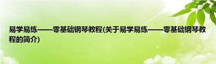 本文关于易学易练——零基础钢琴教程的简介就讲解完毕,希望对大家有所帮助。