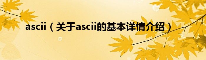 本文关于ascii的基本详情介绍就讲解完毕,希望对大家有所帮助。