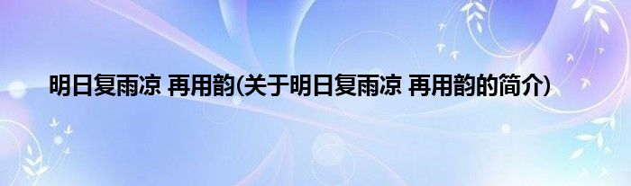大家好,明日复雨凉,再用韵,关于明日复雨凉,再用韵的简介很多人还不知道,现在让我们一起来看看吧!