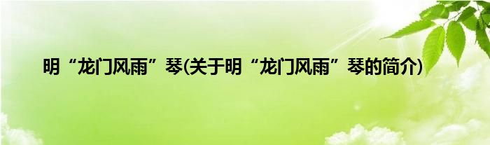 大家好,明“龙门风雨”琴,关于明“龙门风雨”琴的简介很多人还不知道,现在让我们一起来看看吧!