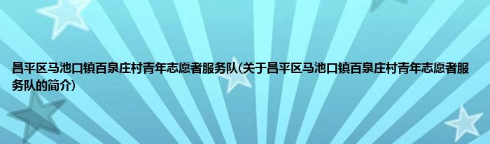 本文关于昌平区马池口镇百泉庄村青年志愿者服务队的简介就讲解完毕,希望对大家有所帮助。