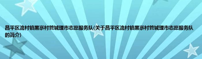 本文关于昌平区流村镇黑寨村管城理市志愿服务队的简介就讲解完毕,希望对大家有所帮助。