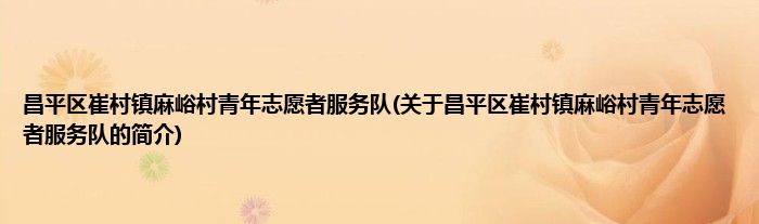本文关于昌平区崔村镇麻峪村青年志愿者服务队的简介就讲解完毕,希望对大家有所帮助。