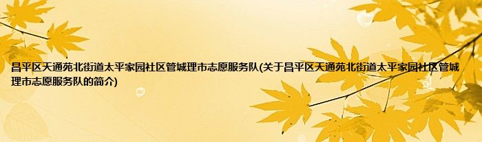 本文关于昌平区天通苑北街道太平家园社区管城理市志愿服务队的简介就讲解完毕,希望对大家有所帮助。