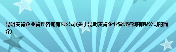 本文关于昆明麦肯企业管理咨询有限公司的简介就讲解完毕,希望对大家有所帮助。