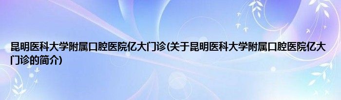 本文关于昆明医科大学附属口腔医院亿大门诊的简介就讲解完毕,希望对大家有所帮助。