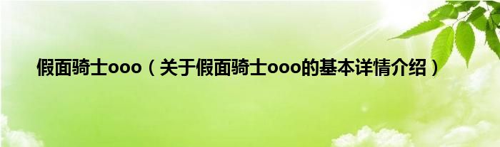 本文关于假面骑士ooo的基本详情介绍就讲解完毕,希望对大家有所帮助。