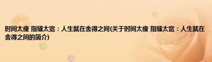 本文关于时间太瘦,指缝太宽:人生就在舍得之间的简介就讲解完毕,希望对大家有所帮助。
