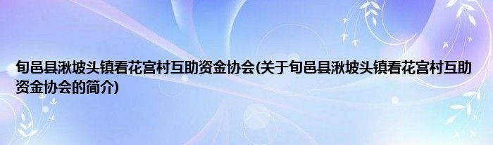 本文关于旬邑县湫坡头镇看花宫村互助资金协会的简介就讲解完毕,希望对大家有所帮助。