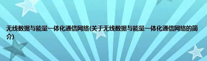 大家好,无线数据与能量一体化通信网络,关于无线数据与能量一体化通信网络的简介很多人还不知道,现在让我们一起来看看吧!
