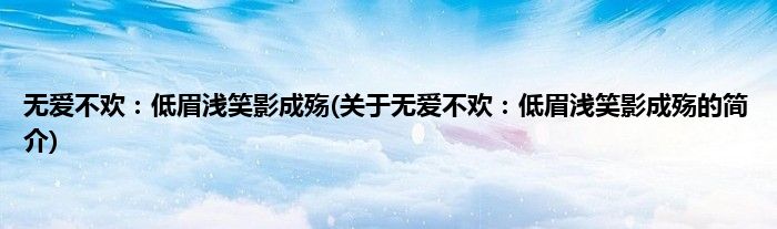 大家好,无爱不欢:低眉浅笑影成殇,关于无爱不欢:低眉浅笑影成殇的简介很多人还不知道,现在让我们一起来看看吧!
