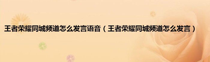 大家好,精选小编来为大家解答以上问题。王者荣耀同城频道怎么发言语音,王者荣耀同城频道怎么发言很多人还不知道,现在让我们一起来看看吧!
