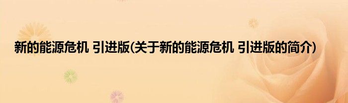 本文关于新的能源危机 引进版的简介就讲解完毕,希望对大家有所帮助。