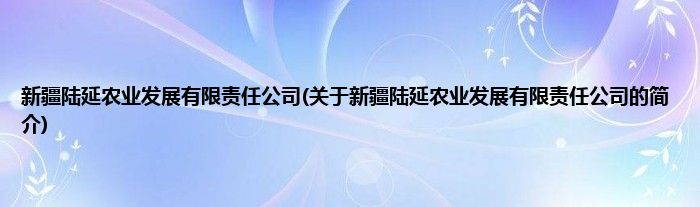 大家好,新疆陆延农业发展有限责任公司,关于新疆陆延农业发展有限责任公司的简介很多人还不知道,现在让我们一起来看看吧!