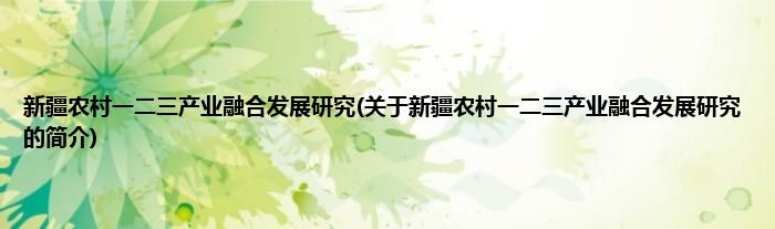 本文关于新疆农村一二三产业融合发展研究的简介就讲解完毕,希望对大家有所帮助。