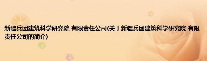 大家好,新疆兵团建筑科学研究院 有限责任公司,关于新疆兵团建筑科学研究院 有限责任公司的简介很多人还不知道,现在让我们一起来看看吧!