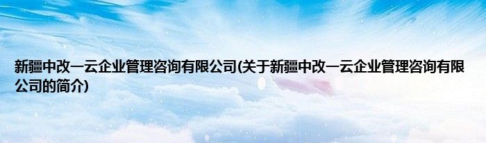 本文关于新疆中改一云企业管理咨询有限公司的简介就讲解完毕,希望对大家有所帮助。