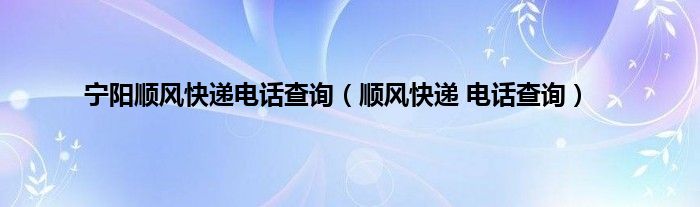 宁阳顺风快递电话查询(顺风快递 电话查询)