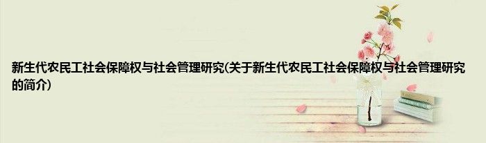大家好,新生代农民工社会保障权与社会管理研究,关于新生代农民工社会保障权与社会管理研究的简介很多人还不知道,现在让我们一起来看看吧!