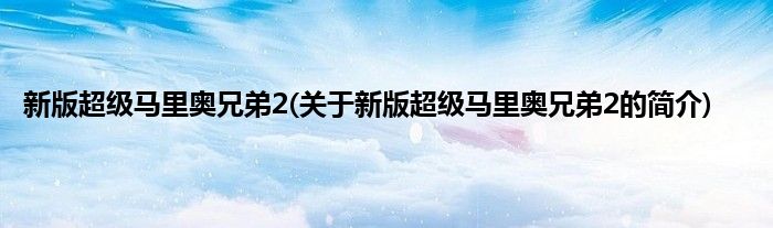 本文关于新版超级马里奥兄弟2的简介就讲解完毕,希望对大家有所帮助。