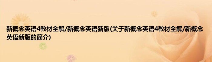 大家好,新概念英语4教材全解/新概念英语新版,关于新概念英语4教材全解/新概念英语新版的简介很多人还不知道,现在让我们一起来看看吧!