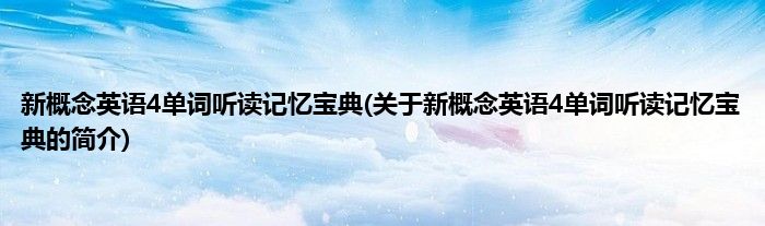 本文关于新概念英语4单词听读记忆宝典的简介就讲解完毕,希望对大家有所帮助。