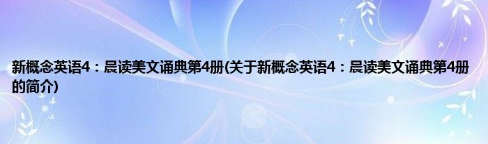 本文关于新概念英语4:晨读美文诵典第4册的简介就讲解完毕,希望对大家有所帮助。
