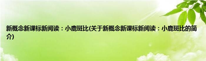 大家好,新概念新课标新阅读:小鹿斑比,关于新概念新课标新阅读:小鹿斑比的简介很多人还不知道,现在让我们一起来看看吧!