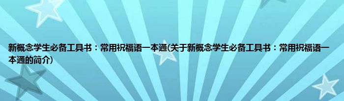 大家好,新概念学生必备工具书:常用祝福语一本通,关于新概念学生必备工具书:常用祝福语一本通的简介很多人还不知道,现在让我们一起来看看吧!