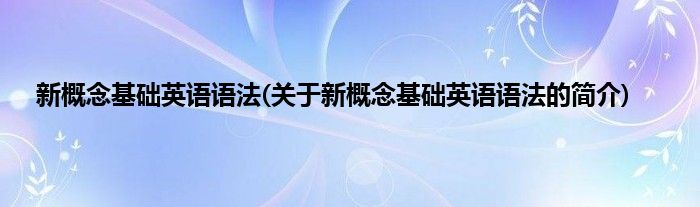 本文关于新概念基础英语语法的简介就讲解完毕,希望对大家有所帮助。