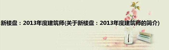 大家好,新楼盘:2013年度建筑师,关于新楼盘:2013年度建筑师的简介很多人还不知道,现在让我们一起来看看吧!