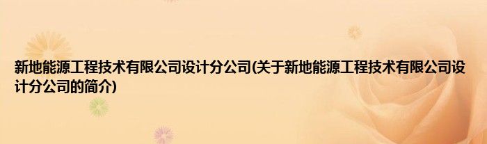 本文关于新地能源工程技术有限公司设计分公司的简介就讲解完毕,希望对大家有所帮助。