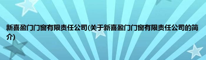 本文关于新喜盈门门窗有限责任公司的简介就讲解完毕,希望对大家有所帮助。
