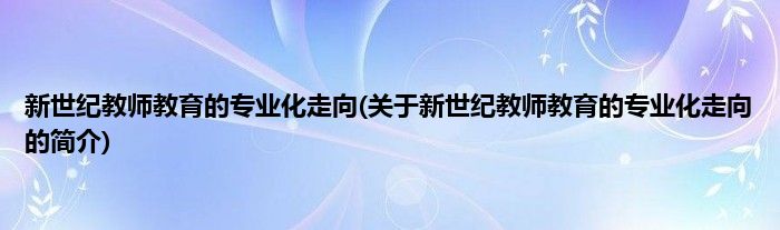 新世纪教师教育的专业化走向(关于新世纪教师教育的专业化走向的简介)