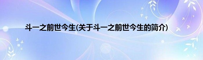 大家好,斗一之前世今生,关于斗一之前世今生的简介很多人还不知道,现在让我们一起来看看吧!