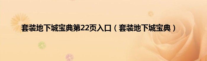 大家好,精选小编来为大家解答以上问题。套装地下城宝典第22页入口,套装地下城宝典很多人还不知道,现在让我们一起来看看吧!