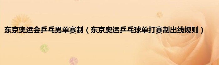 大家好,小常来为大家解答以上问题。东京奥运会乒乓男单赛制,东京奥运乒乓球单打赛制出线规则很多人还不知道,现在让我们一起来看看吧!