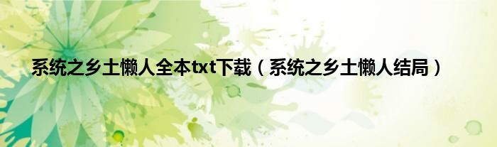 大家好,小常来为大家解答以上问题。系统之乡土懒人全本txt下载,系统之乡土懒人结局很多人还不知道,现在让我们一起来看看吧!