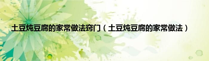 大家好,小常来为大家解答以上问题。土豆炖豆腐的家常做法窍门,土豆炖豆腐的家常做法很多人还不知道,现在让我们一起来看看吧!